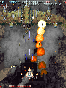 During the 1990’s shoot ’em ups under went something of an evolution in arcades with strategies being needed to be more adhered to rather than just blasting away at whatever it was that was in-front of you. Mechanics were put in place to not only make you figure out the best ways to survive, or defeat a boss, but also on how to amass the highest scores. Toaplan’s Batsugun began the trend of creating bullet hell shoot ’em ups, a style that Cave would go on to embrace after Toaplan’s demise, and a technique Raizing would also implement, but with a different style to Cave.